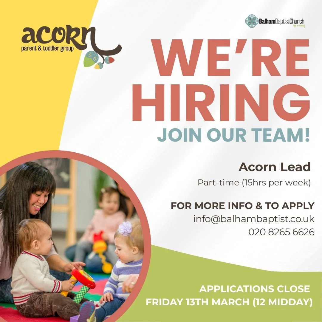 We are currently recruiting for an Acorn Lead. If you would like to know more then please get in touch with us via info@balhambaptist.co.uk